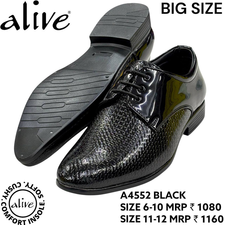 Step out in style with these sleek black and brown formal lace-up shoes from the Alive collection. Designed with a glossy textured finish, they add a modern touch to classic formal wear. The cushioned insole ensures all-day comfort, while the durable sole provides excellent grip and stability. Ideal for office wear, weddings, and special occasions, these shoes combine elegance, comfort, and long-lasting performance for everyday sophistication.
