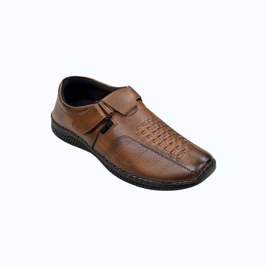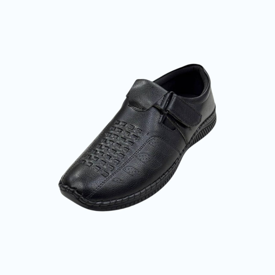 Step into all-day comfort with these stylish black, brown and tan slip-on shoes. Designed with a soft, textured upper and breathable perforations, they keep your feet cool and relaxed. The cushioned insole provides superior support, while the durable, anti-slip sole ensures stability on every step. Easy to wear with a secure strap closure, these versatile shoes are perfect for daily wear, work, or casual outings.