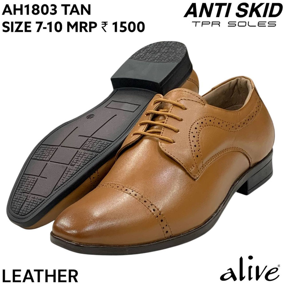 Step into comfort and style with these premium black, Tan and Brown leather formal shoes from Alive. Crafted with a sleek design and fine stitching, they offer a polished look perfect for office wear, business meetings, and formal occasions. The durable anti-skid TPR sole ensures excellent grip and stability, while the cushioned insole provides all-day comfort. Designed for versatility and elegance, these shoes combine classic style with reliable performance.